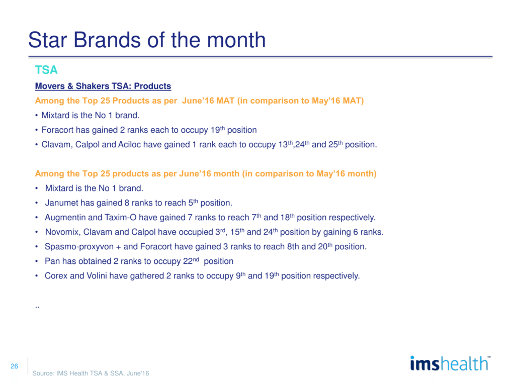 Among top 25 companies, Lupin, Sanofi & Unichem have gained 1 rank each and moved to 7th, 15th & 24th rank respectively in comparison to previous month.