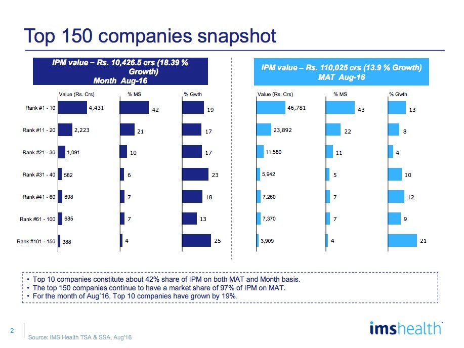 IPM continued to remain fragmented with top 10 companies occupying 42% of the share and companies across value buckets reflecting strong double digit growth for the month. Top 10 companies grew at 19% for the month of August 2016 while companies in the 11-20 and 21-30 slabs grew at 17% each.