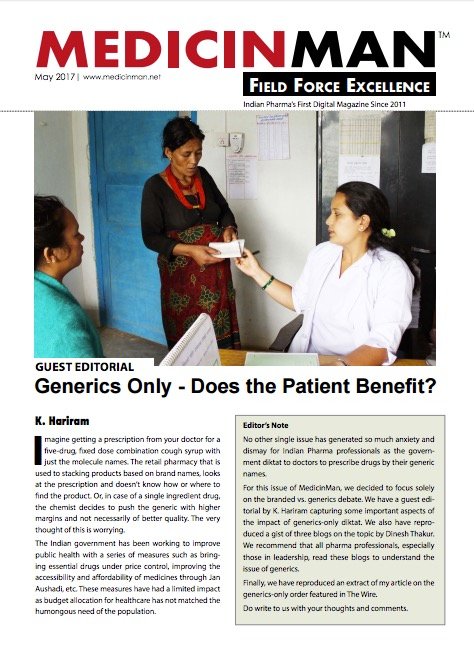 This article features excerpts of a series of blogs written by well-know healthcare entrepreneur, activist and commentator, Dinesh Thakur, on the recent branded v. generics debate.