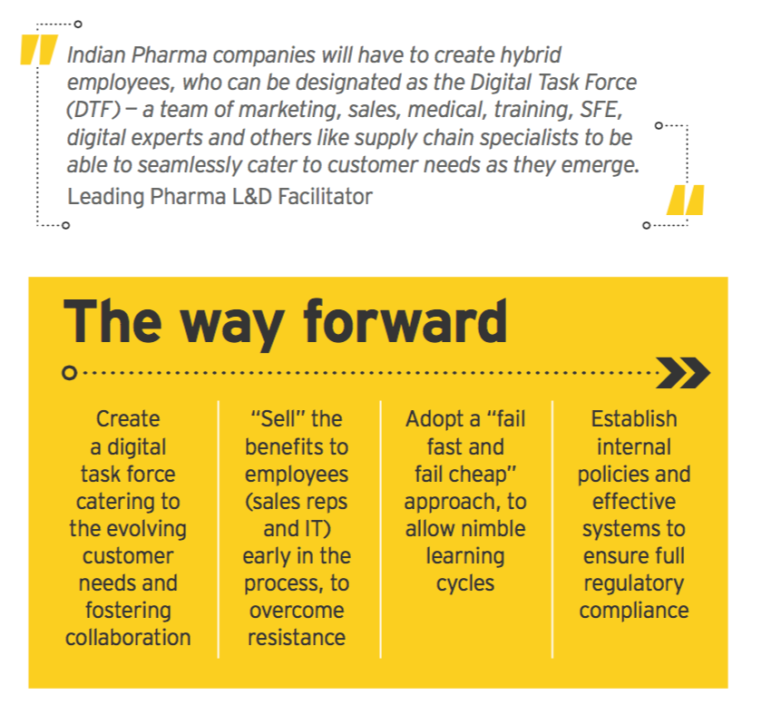 We will need to find a way to bring together the capabilities of the Medical Rep, the changed scenario of the visit and the ways we can reach doctors into one single strategy rather than looking at the physical and the digital parts separately. Our medical reps will continue to be the core of our promotion, and our digital strategy will need to empower them to not only do a better call but also support their efforts by building processes that will help them beyond the few minutes that they spend in the Clinic. Marketing budgets will have to move away from conventional investments and also think beyond hardware to increase digital engagement.