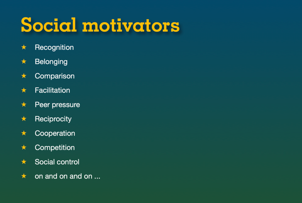 We act the way our groups/tribes act. We act in compliance with our group norms. Peer to peer influence. A simple study which focused on improving the number patients to arrive on time for their appointment shows that rather than a generic message ‘Please arrive on time’ communicating the message ‘80% of patients in this clinic arrive on time for their appointment’ is more likely to improve on-time arrivals.