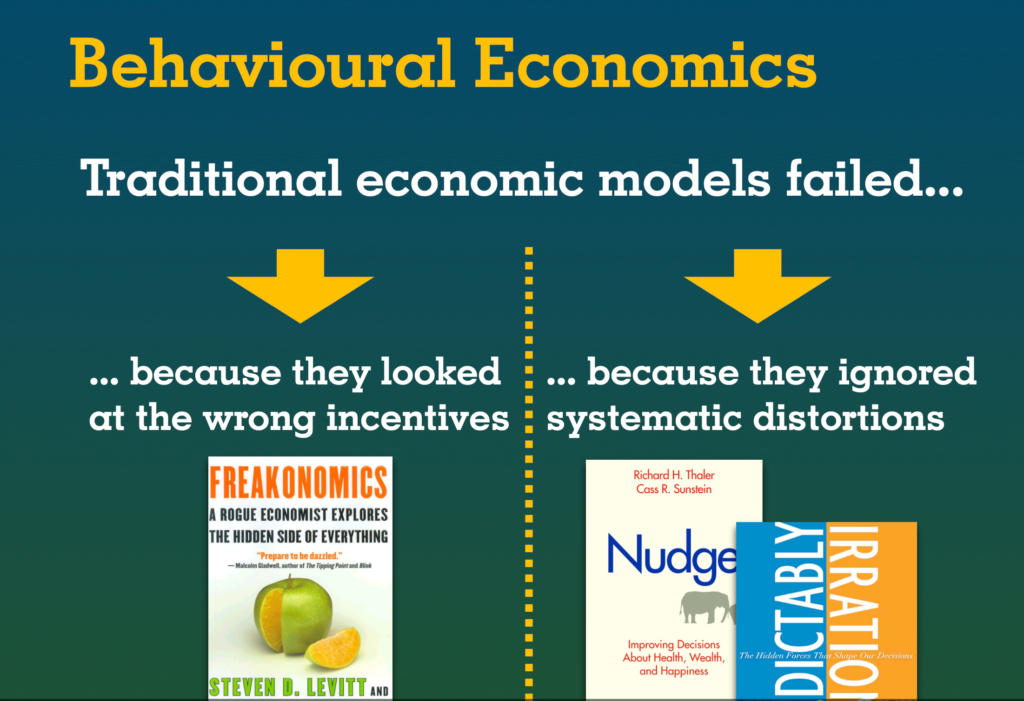 The premise of traditional Economics was that human actions are based on rationality. Meaning we systematically examine our choices in profit and loss framework and then decide. Behavioral Economics shows how individuals make decisions which are often non-rational.