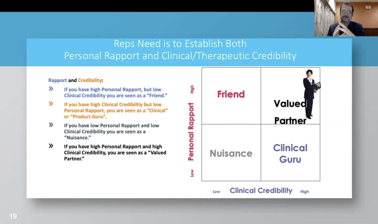Now the challenge for pharma is do take a hard look at this matrix and work to build the capabilities of their field force to become a Valued Partner.