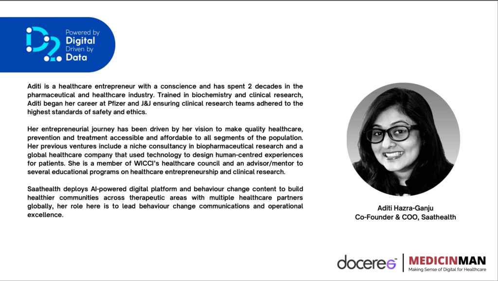 After the pandemic accelerated digital adoption in the industry, we saw more random acts than cohesive strategies. It was as if the digitally less aware industry suddenly moved into a preparedness phase and tried to do many things at the same time. Dr. Aditi Hazra Ganju co-founder of Saathealth says it was ‘an existential crisis for the industry, as other ways of reaching out had stopped during the pandemic. However, she added that digital tools existed, but were in an experimental stage before the pandemic. “This may have led to some inefficiencies in the system’.