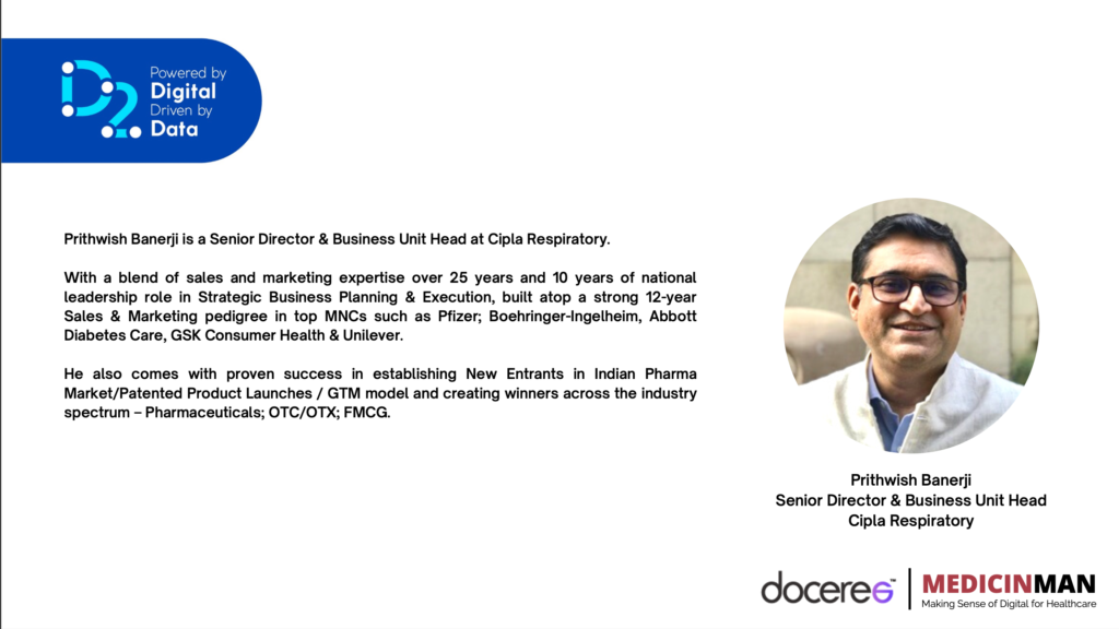 Is scaling from utility to expertise an easy task to do? Mr. Prithwish Banerji – Sr. Director at Cipla says both pharma and doctors were averse to changing (to digital) until Covid happened. And now that the pandemic is receding, most of that ‘forced change’ is lapsing back to the old behavior of face-to-face meetings. However, companies like Cipla are consciously retaining some of the digital platforms and using them to continue interacting with doctors for CMEs, advisory boards, and other scientific meetings. Multichannel engagement is also helping to bridge the gap between 1:1 meetings by the sales teams with customers. In some therapies, digital patient educators are filling in for physical educators and improving patient reach by ~2.5X.