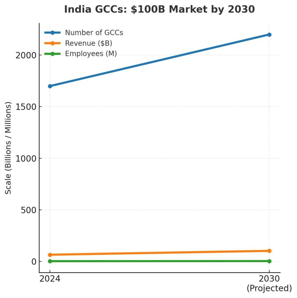 • By 2030, that number will climb to 2,200 GCCs, $100B+ revenue, and ~2.8M employees.