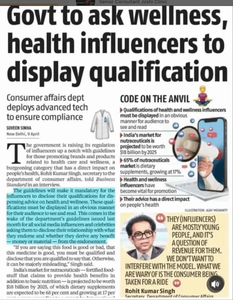 India’s wellness economy is booming—nutraceuticals, supplements, and alternative therapies are projected to touch $18 billion by 2025. Alongside, health and wellness influencers have emerged as powerful promoters, shaping consumer decisions daily. But with influence comes responsibility, and now, regulation.
