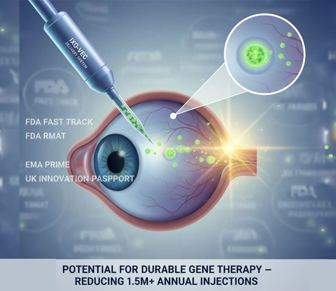 Ixo-vec holds Fast Track and RMAT designations from the FDA, as well as PRIME and Innovation Passport status in Europe and the UK, reflecting regulatory enthusiasm for advancing more convenient—and potentially durable—gene therapies for chronic ocular disease. With over 1.5 million patients in the US alone currently requiring frequent injections, the demand and commercial potential for such a therapy is high.[4][1]