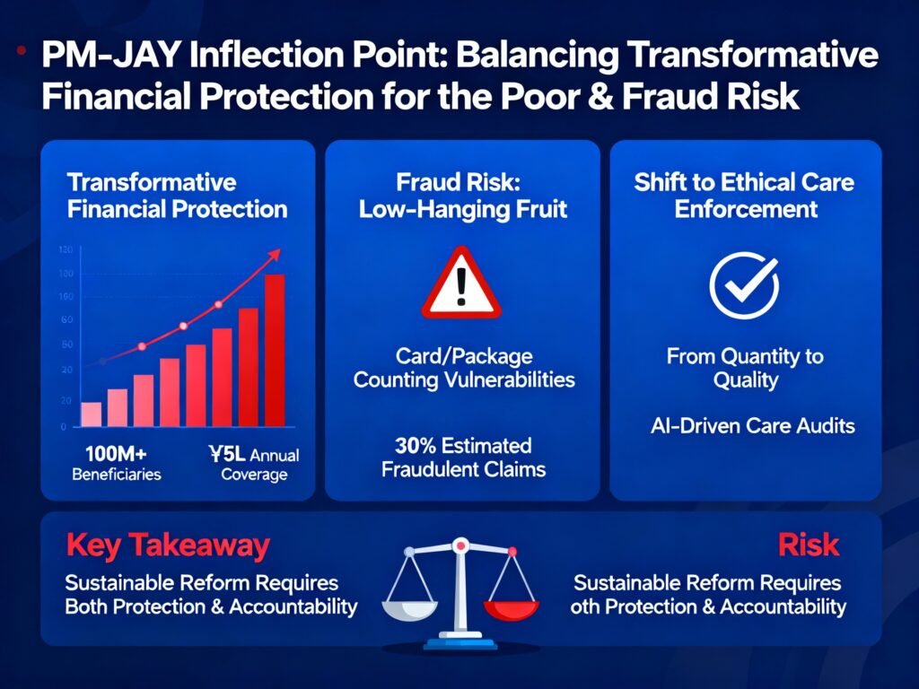 In that sense, PM-JAY is at an inflection point: the same characteristics that make it a transformative financial protection scheme also make it tempting “low‑hanging fruit” for fraud, and the balance will depend on how quickly India can move from counting cards issued and packages used to measuring—and enforcing—appropriate, ethical care.[3][2][1]