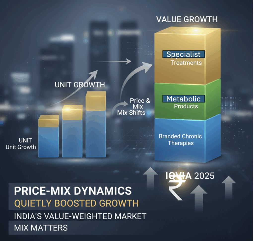 Indian pharma wrapped up November 2025 with serious velocity. Growth wasn’t just linear — it was driven by a new value engine powered by GLP-1s, chronic-care momentum, and a pricing mix shift that meaningfully elevated the industry’s baseline. Even using only public data, the signal is unmistakable: November marked a strategic pivot point for the Indian Pharmaceutical Market (IPM).