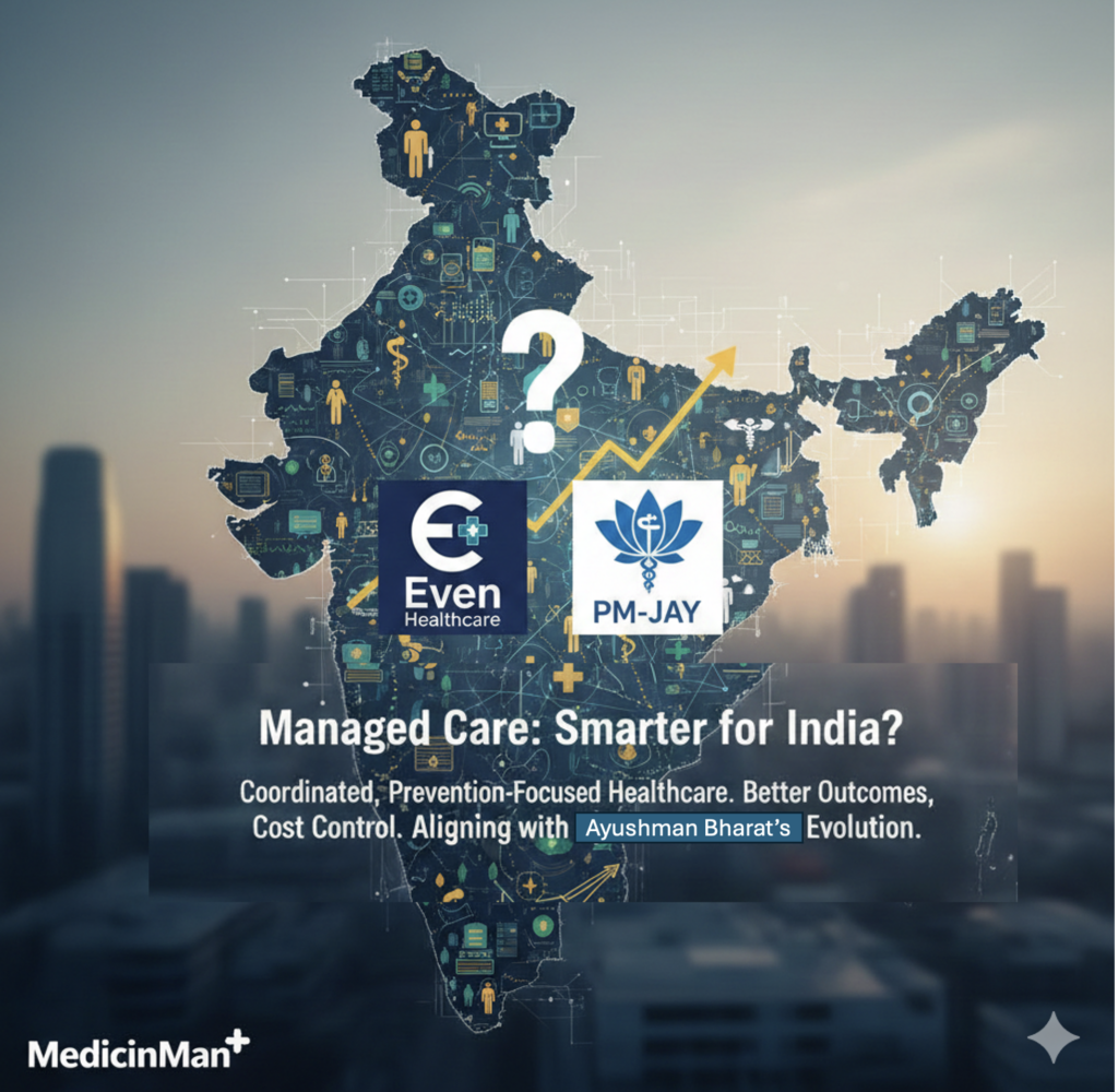 Managed care shifts healthcare from fragmented fee-for-service models to coordinated, prevention-focused systems, delivering better outcomes and cost control. Proven internationally and emerging in India via Even Healthcare and PM-JAY pilots, it promises value-based care amid rising expenses. For MedicinMan readers in pharma and policy, this unified approach aligns with Ayushman Bharat’s evolution. ncbi.nlm.nih+1​​