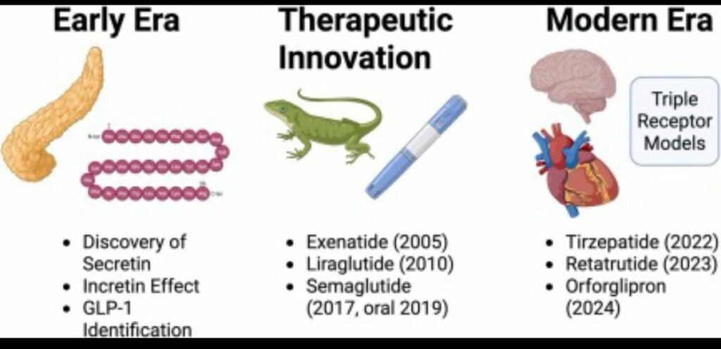 One of those tweaked versions was semaglutide, designed to stay active for around a week, which made it practical for real‑world use in diabetes and, later, obesity.[6][7]