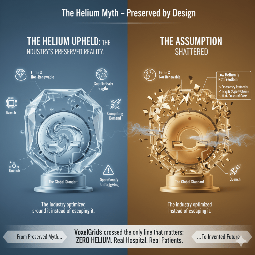 Even celebrated innovations like Philipsโ BlueSeal MRIโoften marketed as revolutionaryโstill rely on helium. Yes, itโs only ~7 litres instead of thousands. Thatโs progress. But itโs still dependency.