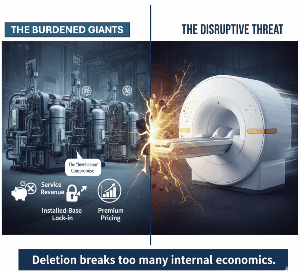 Siemens, GE, and Philips control nearly 90% of the global MRI market. Their systems are clinically excellentโbut strategically burdened.