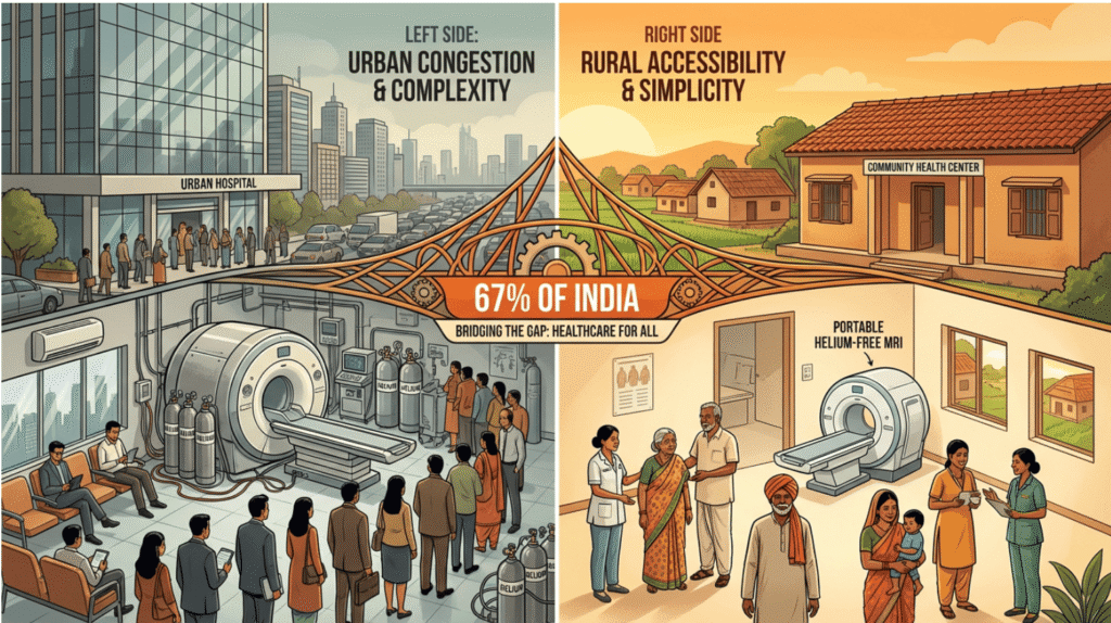 Nearly 67% of Indians live outside major metros. This is where helium dependence quietly kills diagnostic access.