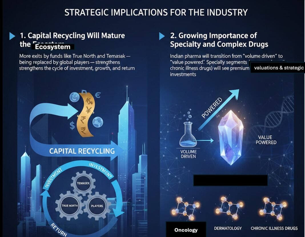 Indian pharma will transition from “volume driven” to “value powered.” Specialty segments (oncology, dermatology, chronic illness drugs) will see premium valuations and deeper strategic investments.
