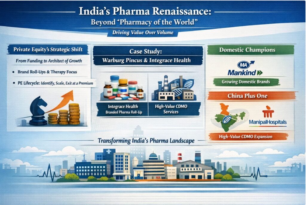 Indian pharmaceuticals have long been known as the “pharmacy of the world” — supplying affordable generics globally. But the industry is visibly pivoting: instead of volume-driven, low-margin generics alone, it’s embracing specialty drugs, branded portfolios, clinical platforms, and consolidated delivery ecosystems — and Private Equity (PE) is steering that shift.