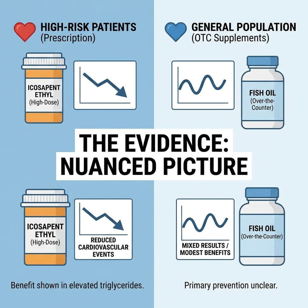 The Evidence: Here, the picture is more nuanced. High-dose prescription omega-3s (like icosapent ethyl) have shown benefit in reducing cardiovascular events in high-risk patients with elevated triglycerides. However, over-the-counter fish oil supplements for primary prevention in the general population have yielded more mixed results in recent large trials, with benefits appearing modest at best.