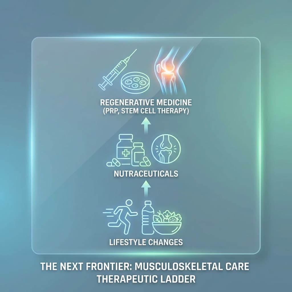 It is more accurate to see this as a potential redefinition of the therapeutic ladder, rather than a simple replacement. In the future, patients might start with lifestyle changes, add nutraceuticals for general support, and then, if eligible and necessary, progress to more advanced (and expensive) regenerative biologic therapies for specific conditions.