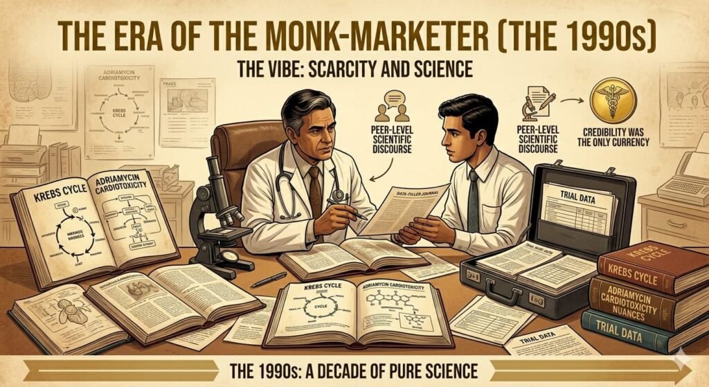 The Play: In the 90s, if you did not understand the Krebs cycle or the nuances of Adriamycin cardiotoxicity, you did not get past the chamber door. With fewer than 200 active medical oncologists nationwide, detailing as we know it today did not exist. You engaged in peer-level scientific discourse.