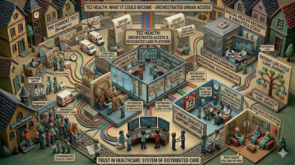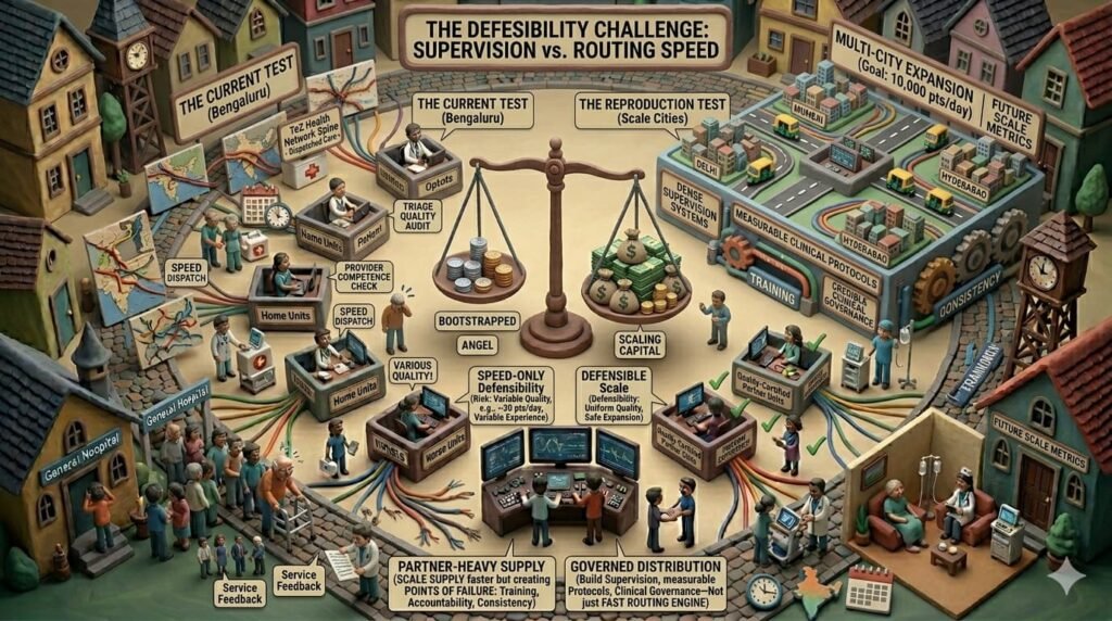 That is why Tez Health’s real test will not be whether it can dispatch care quickly in Bengaluru. The real test is whether it can reproduce the same experience safely across multiple teams, partners, neighbourhoods, and cities without turning quality variation into a structural weakness.[5][7][1]