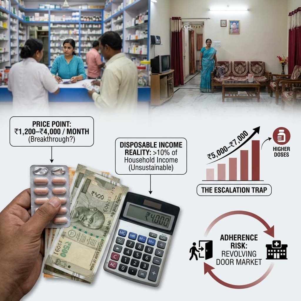 - Disposable Income Reality: For a chronic medication to be sustainable in India’s high Out-of-Pocket Expenditure (OOPE) environment, it typically should not exceed 10% of a household’s monthly disposable income.